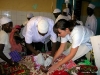 – Ces objectifs de travail s’appliquent aussi pour les étudiants présents en stage au moment de la mission et des ateliers de pratique sont organisés : pesée, prise du périmètre crânien, réfection de pansements, injections, pose et surveillance de perfusions, en mettant l’accent sur l’importance de l’observation clinique et la relation avec l’enfant : l’étudiant infirmier, l’infirmière étant la première personne, avec la maman, capable de déceler une complication : une aggravation neurologique, une hyperthermie, un pansement qui saigne… et en mesure de prévenir un médecin.