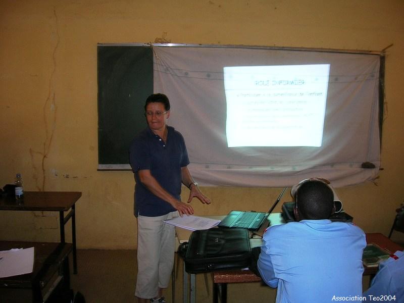 Le programme de formation infirmier est sensiblement identique au contenu du programme français, avec une approche par compétences. On ne retrouve pas de module de neurologie spécifique. Au regard de l’enseignement de pédiatrie/chirurgie, un programme de formation en neurologie/neurochirurgie pédiatrique a été établi par Teo2004, pouvant s’intégrer dans les différents modules respectifs à chaque année de formation. C’est lors de la préparation des missions que les cours sont proposés aux Directions des ENSP et certains retenus en fonction du niveau de formation des étudiants.